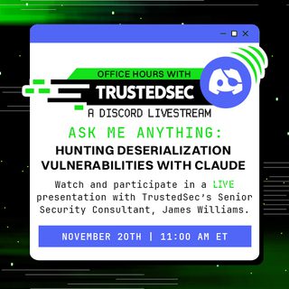 Join us for an exclusive live Discord presentation and Q&A on Thursday, November 20 with Senior Security Consultant James Williams. James will walk through how to find zero-days in .NET assemblies using Model Context Protocol (MCP), a process outlined in his blog Hunting Deserialization Vulnerabilities With Claude.