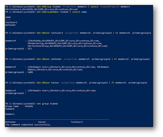Finally, since the primaryGroupID is an independent attribute, it is possible for an attacker to modify the Discretionary Access Control List (DACL), effectively hiding group membership from all users in the forest, even Domain Admins.