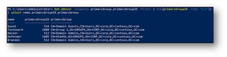 | select name,primaryGroupID,primaryGroup 2. You should be reviewing and testing all scripts, tools, and monitoring that report on group membership. Membership using primaryGroupIDsmay be missed depending on the PowerShell cmdlet or method used to report on group members. Logging and reporting on group changes may have a blind spot when it comes to the use of primaryGroupIDs.