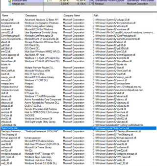 The two (2) images below demonstrate the list of Notepad's default DLLs followed by the list of DLLs after adding a 'malicious' one (AMSI.dll). By itself, AMSI.dll is not malicious, but it is a DLL that is not normally loaded by this application.