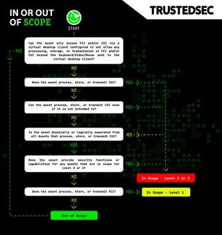 TrustedSec is a CMMC Registered Practitioner Organization (RPO) that can help contractors understand how to determine and minimize their CMMC scope as well as assess compliance with the requirements that apply to the scope. Please get in touch with us if you need help building an efficient and effective compliance program.