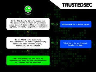 TrustedSec is a CMMC Registered Practitioner Organization (RPO) that can help contractors, Subcontractors, and service providers understand if they have obligations under CMMC and implement appropriate solutions to demonstrate compliance. Please get in touch with us if you need any help understanding your compliance program and engaging with customers or service providers.
