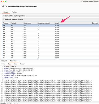 Intruder does capture every response, but manually reviewing thousands of them for subtle content changes is impractical. If a meaningful difference occurs that doesn't trigger a change in response size or timing, it effectively becomes invisible and we could miss something important.