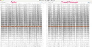 What does this process look like and what can it find? Let’s start with my favorite example, the needle in the haystack. All responses are the same size, with one (1) minor difference for a specific input. Let’s look at this example response.