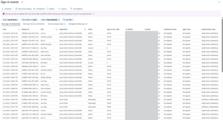 We can change the status to only show failed attempts which can be helpful to identify potential password-spray activity, though the attacker can vary their approach which means attack activity may blend in. Though it is interesting to see that the activity shows the application as “Azure Active Directory PowerShell”. Targeting failed attempts with the application set to Azure Active Directory PowerShell may be related to password-spraying.