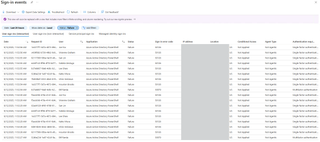 In the screenshot below, we have selected the status field which shows success as well as failed logon attempts. Note that the Sign-in Error Code is 50126 when the password guessed is wrong, and the Sign-in Error Code is 50079 when the password is guessed successfully. In this case, MFA is required so the password was guessed correctly, but MFA was not provided as part of the authentication. When there is a successful authentication using username and password and MFA is not required, the Sign-in Error Code is 0.