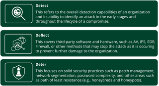 Utilizing information from previous assessments (e.g., External/Internal Penetration Test, Adversarial Attack Simulation, Adversarial Detection & Countermeasures), the past and present security posture of the organization is evaluated by identifying the defensive controls around the following abilities: