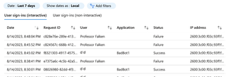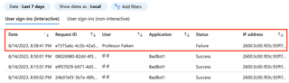 5. Two more logons were attempted with graph_logon.py. Note that the date of this log is AFTER the date of our graphninja.py attempt (August 15th, 2023 at 01:45:52 and 01:48:04 UTC).