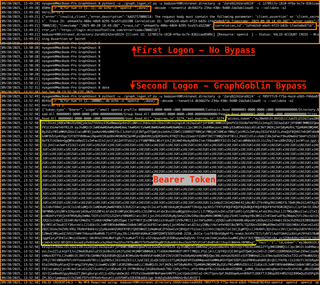 In the above image, below the failed login, you can see a valid login and a timestamp. The valid login occurs on 9/20/2025 at 13:52:38. The difference is, this time, I'm using the GraphGoblin bypass that will make this login event invisible. The login is successful and we can see a bearer token is returned.