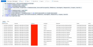After finding these last two bypasses, I started to see if I could identify traffic from these bypassed sessions. I had been collecting Graph activity in a Log Analytics workspace along with Sign-In logs. While reviewing logs I noticed that the Sign-In logs and the Graph Activity logs both had a Session ID field. Perfect! It should be possible to take a list of all unique Session IDs from the Graph Activity logs and find a corresponding Session ID in the sign-in logs. Any Session IDs that only show up in the Graph Activity logs, and don't exist in any sign-in logs, must have bypassed the sign-in logs. Note for defenders: you will need an E5 license to collect the Graph Activity logs.