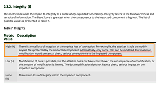The Integrity rating is the heart of this, and it's why this should be rated as 'Important' in Microsoft's vernacular. If we consult the CVSS v3.1 documentation, we can see that they give examples of what would constitute Low or High for the Integrity metric.