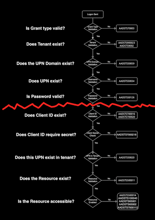 Well, it turns out, EVERYTHING you submit other than the username and password gets checked AFTER passing password validation. Once it knows you're a valid user with a valid password, it then checks to see if you have a valid Client ID. Then it might check to see if the UPN is in the right tenant, or if the Resource that you're requesting is valid. Below is a flowchart showing the checks that I've mapped out.