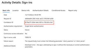When you make a logon attempt to Graph, you supply a number of fields, depending on what method of authentication you're using. These fields might include:
