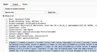 You may wish to configure where the extension should send output. Requests to the Ollama API are printed. If you will need the complete prompt and context for reporting, saving it to a file, or writing in the console, logs might be preferred.