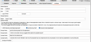 All you need to do is check your JRuby environment to make sure you have version 9.3 or later and have installed the Base64 and JSON gems. Next fetch my plugin https://github.com/GeoffWalton/LLMHaxor/blob/main/LLMHaxor.rb to add to Burp Suite.