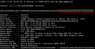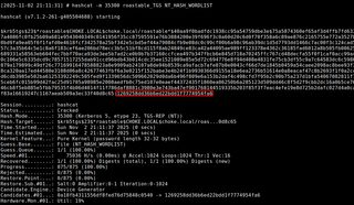 Attacking the NT hashes is much faster. On an Apple M3 Max, Hashcat NTLM (mode 1000) runs at roughly 30,000 MH/s while TGS-REP (mode 13100) runs at about 300 MH/s, roughly a 100x speed advantage. While that gap doesn’t account for the time spent testing for reuse, running Hashcat’s NT-hash modes against NT-based captures adds only minimal extra runtime.