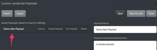 The delete button will delete the payload from the database. You can export, edit, and reimport payloads with the import and export buttons. The format of the payload files can be found in the README here if you wish to generate these externally to the JS-Tap portal: