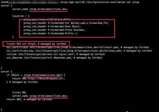 Once you have your nginx configured with your Let’s Encrypt certificate, your nginx site configuration should look similar to the following example. Note that if you want nginx to use HTTP/2, you can set it in the configuration file “listen 443 ssl http2;”. Also, make sure you set the “proxy_set_header” values, so that JS-Tap knows the client IP address.