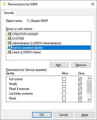 Titanis.Winterop.NtstatusException: The operation failed with: STATUS_ACCESS_DENIED (0xC0000022).This instructs the Titanis command that when a ticket is required for any service class on LUMON-FS1, it should first change the service class to host before requesting a ticket. The ticket is presented to the server as-is, with the mismatched SPN. Although the ticket is encrypted with the same secret key, the server notices that the SPN on the ticket doesn’t match the service, so it is rejected. Changing the = to ~= causes Titanis to use a ticket with the mapped name, but to present the ticket to the service with the original name. For example: