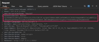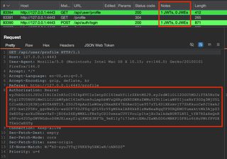 Here’s a view of that same JWT being used in an HTTP request, which is how JWTs will likely be handled by a penetration tester: