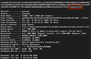 Step 2: | Provide token to cracking software (JWT_Tool, hashcat) and review results |