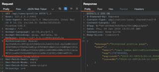 However, running the companion app with the --disable-validation flag will skip signature validation steps. The last several characters were modified arbitrarily within a Repeater request and the request was sent to the server, resulting in access to protected data.