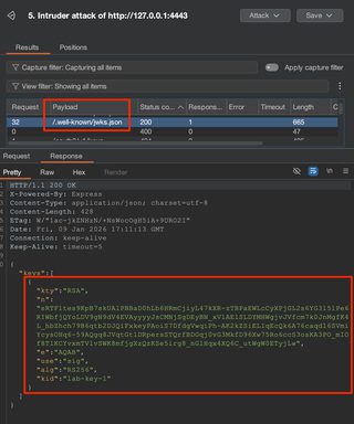 If you're using a wordlist to scan for public key endpoints using Burp Suite Intruder, make sure it isn't URL-encoding characters you don't want it to, as it does that by default in Intruder. Also, when copying a JWKS into JWT Editor to make a new key, copy just the key object, not the key container.