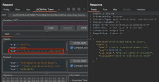 This tells us the token signature is not being validated, yet it is still accepted, as evidenced by the valid data being returned. A simple way to exploit this further is to intercept a request or send to Repeater and edit claims directly in JWT's tab when an extension like JWT Editor is loaded. Claims can be quickly modified in this tab and changes applied before sending the request.