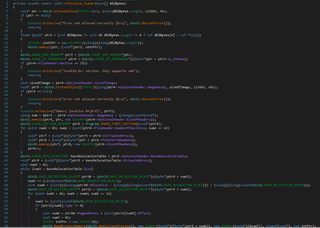 - Line 20: Function header for reflective_loader. Takes as an argument a pointer to a memory location containing the DLL