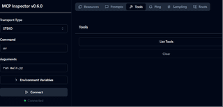Using the Claude Desktop, MCP servers can be easily configured. To debug an MCP server, modelcontextprotocol/inspector can be used to provide access to components of the server. Running the following command lets us access the server at localhost:5173: