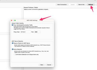 Discovery and enumeration of the MCP server is the first major feature of MCP-ASD. Once the Burp extension is installed, there are optional settings for passive and active detections of MCP servers. Passive detection is based on common headers and endpoints. Optional active detection has Burp probe common endpoints to detect if a domain seen in Burp Suite is exposing an MCP server. The active detection is disabled by default but can be enabled in the settings. It’s a very light active detection with only a few GET requests triggered to common endpoints.