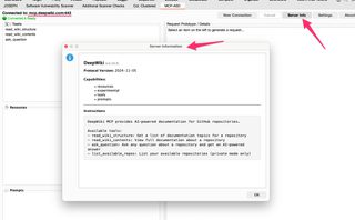 MCP servers can also advertise information about themselves, which can be retrieved using the Server Info button.