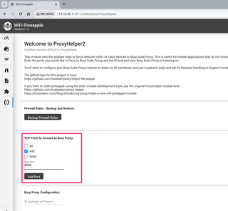ProxyHelper2 provides the same functionality as ProxyHelper but for newer Hak5 Pineapple hardware. One addition in the new module allows arbitrary TCP ports to be added to the forwarding beyond just ports 80 and 443, in case your application is using odd ports. The only reason we've rewritten this tool is because Hak5 abandoned their old module development system and implemented a new one in the Mark VII models breaking backwards compatibility.