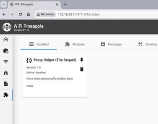 Now we can go back to our Pineapple dashboard and configure ProxyHelper2. In the installed module page click the ProxyHelper2 module to launch the tool.