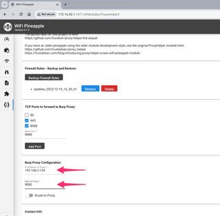 You can now configure the IP address and port that your Burp Suite Proxy is listening on. Remember, your Pineapple must be able to reach the Burp Suite Proxy.