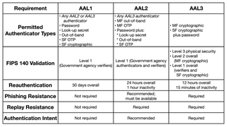 Now that the calculated AAL has been established, the chart in Section 3.5 of SP 800-63b will help with understanding some of the requirements.