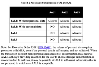 Using the impact level leads to determining the IAL and then the AAL. When determining the AAL, the intent is to mitigate risk from authentication failures such as tokens, passwords, etc., whereas IAL is aligned with identity proofing and individuals. Certain factors, such as privacy, fraud, or regulatory items, may require a specific AAL. NIST references these in SP 800-63A, SP 800-63B, and SP 800-63C.
