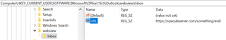 - HKCU\Software\Microsoft\Office\16.0\Outlook\WebView\Inbox