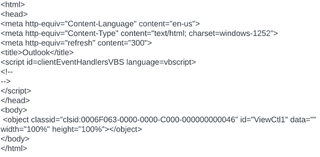 Microsoft also helpfully provides a COM object that can be embedded in the HTML page we create. This COM object (available via clsid 0006F063-0000-0000-C000-000000000046) renders the currently selected view for Outlook and properly communicates with Outlook to display what the user would expect from the default controls. There are a few other clsids that achieve the same goal, and we leave finding them as an exercise to the reader.