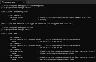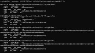 Like many configuration settings on Windows, service triggers are housed in the registry. We can query the registry for these values using reg query, targeting the service subkey TriggerInfo recursively.