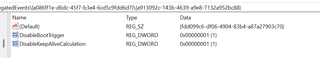 The Trigger value has data that is equal to a GUID. This GUID is found to be a subkey and has the following values: