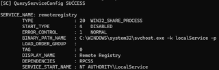 In the above instance we see the START_TYPE is set to 4 (DISABLED) so normally this wouldn’t work. I’ve changed it to 3 (DEMAND) to continue this example.