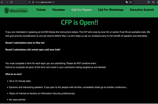 Once you have identified a topic, submit it to a CFP. The example below is from GrrCON Security Conference.