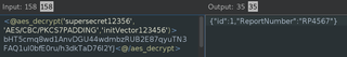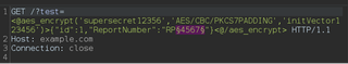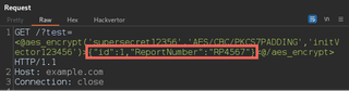 In the decrypted text, we see report numbers. A common thing we would want to try is to see if we can return other valid reports by brute forcing report numbers. To easily modify the report number, we can add a Hackvertor encrypt tag around our decrypted JSON and set the Hackvertor tag as the URL parameter value.