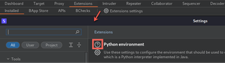To add a Hackvertor Python script to a request, you must have "Allow code execution tags" checked in the Hackvertor menu, and you must have the Python environment set up in Burp. This normally just requires you to download the latest Jython JAR file and link the location in Burp's extension settings. Many extensions require Jython, so you may already have it. If not, click the question mark in the extension settings to help you set it up.