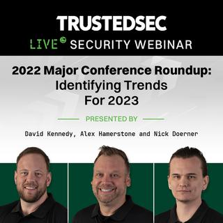 Join TrustedSec panelists David Kennedy, Founder & Chief Hacking Officer; Alex Hamerstone, Advisory Solutions Director; and Nick Doerner, Penetration Testing Security Consultant, for summaries and perspectives on what people were talking about in 2022 and what’s yet to come in 2023!