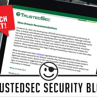 TrustedSec's Incident Response Team sent urgent communications to all IR retainer clients after the discovery of the compromise of Okta. Below are the recommendations provided with additional updates after reviewing more information on 03/23/2022.